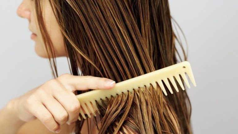 Definition: A strip of plastic, metal, or wood with a row of narrow teeth, used for untangling or arranging the hair.